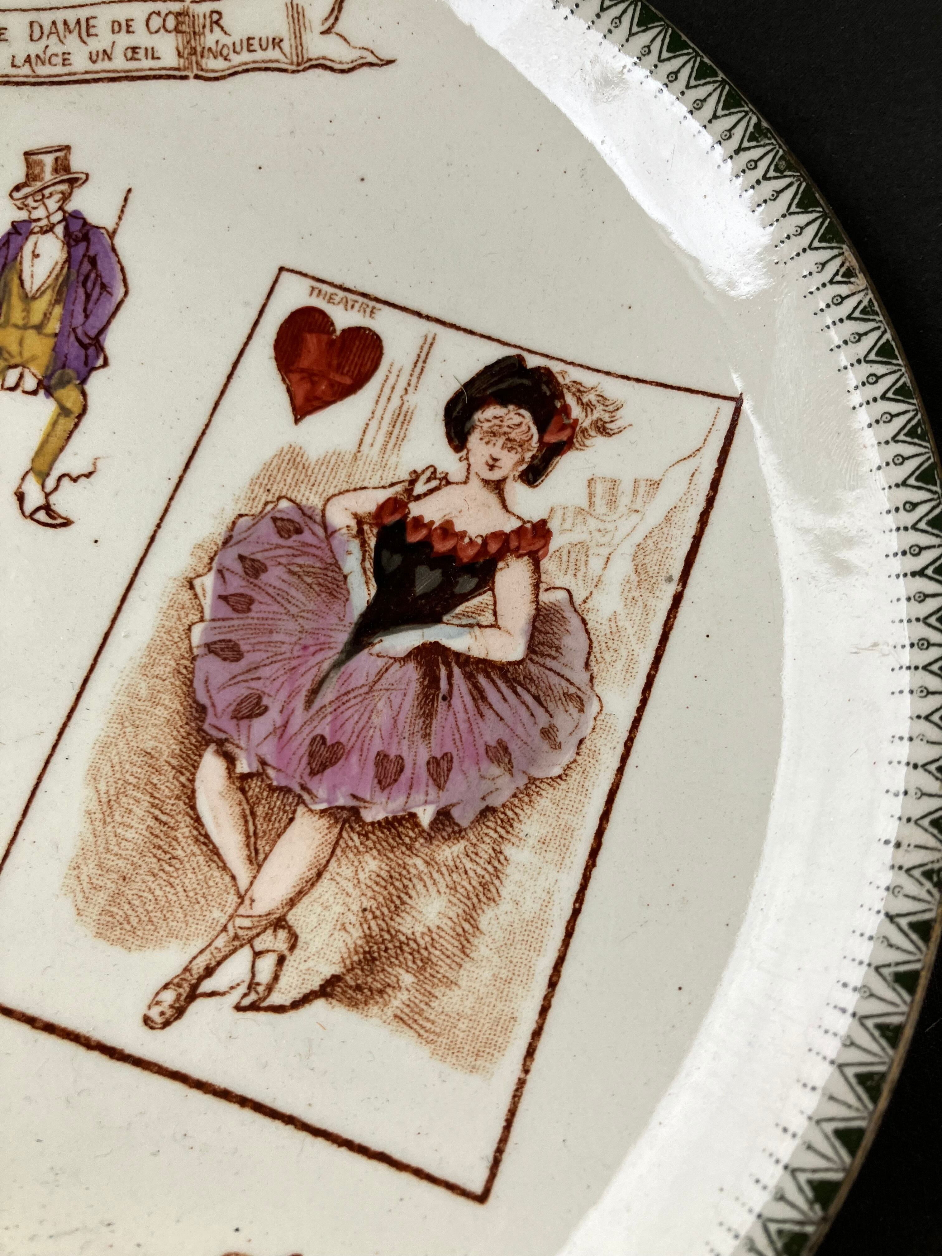 ・直径 20㎝ CHOISY LE ROI のトランプ柄プレートです。大変珍しいです。ヒビカケ無く経年の割に良い状態です。1920年から30年。フランスアンティーク。