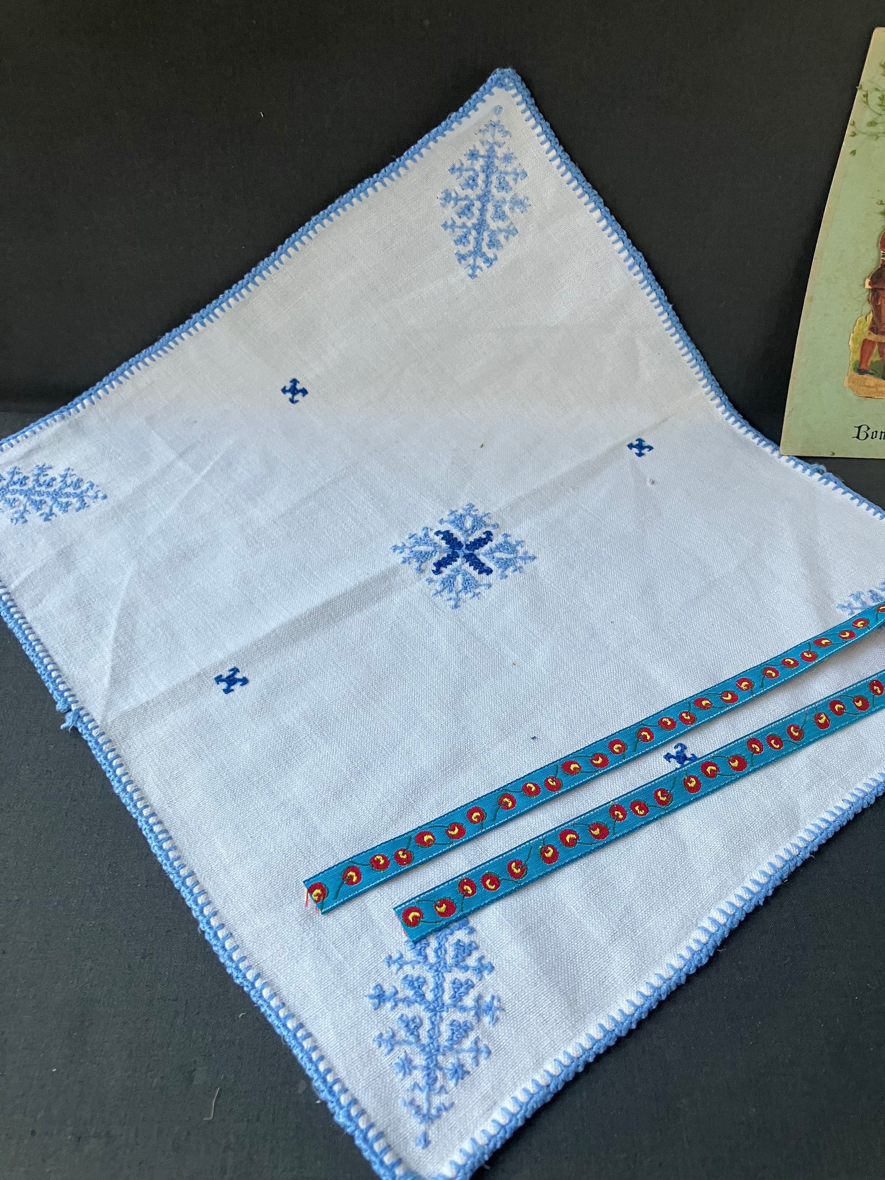 ボーイフレンドとして、たまには男の子のセットを。コートと帽子がおしゃれな男の子のミニョネットと、かけっこする子供達のドラジェbox.雪の刺繍のドイリー とクロモスのカード、ultramodのリボンのセットです。フランスビンテージ。