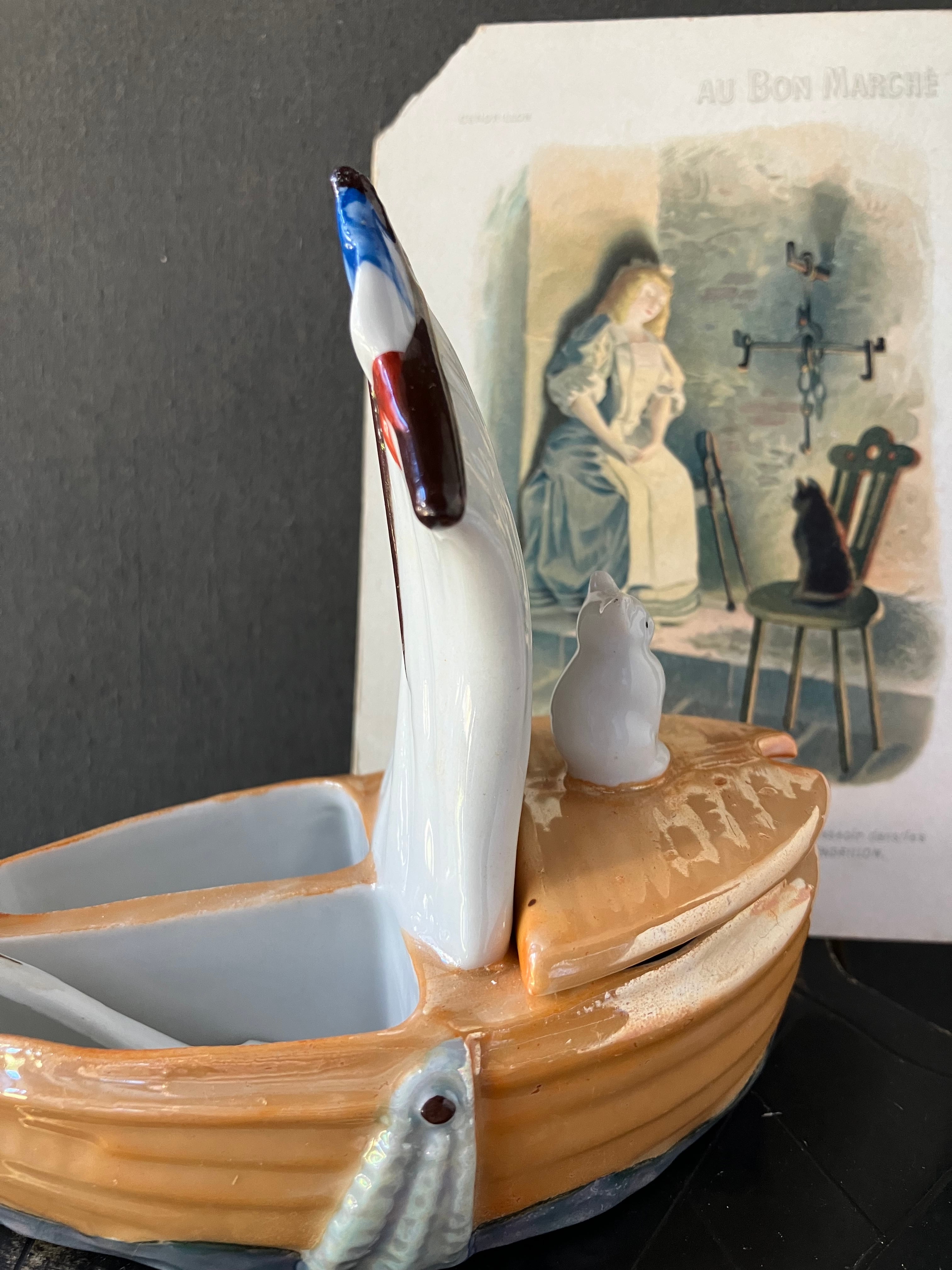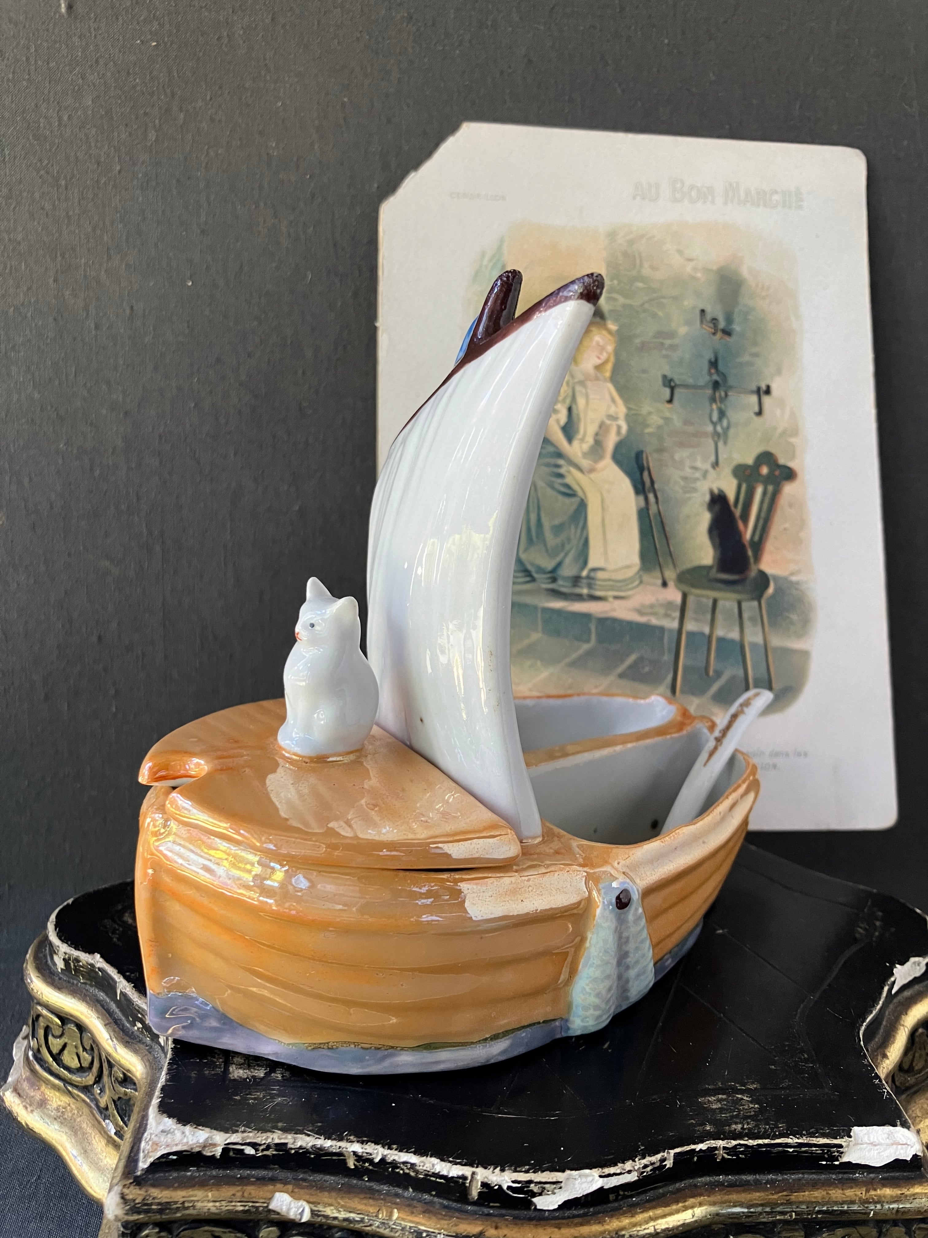 アンティークshop EWさんより、フランス国旗がたなびくヨット型のスパイスホルダーです。船頭の猫ちゃんが可愛いらしいです。