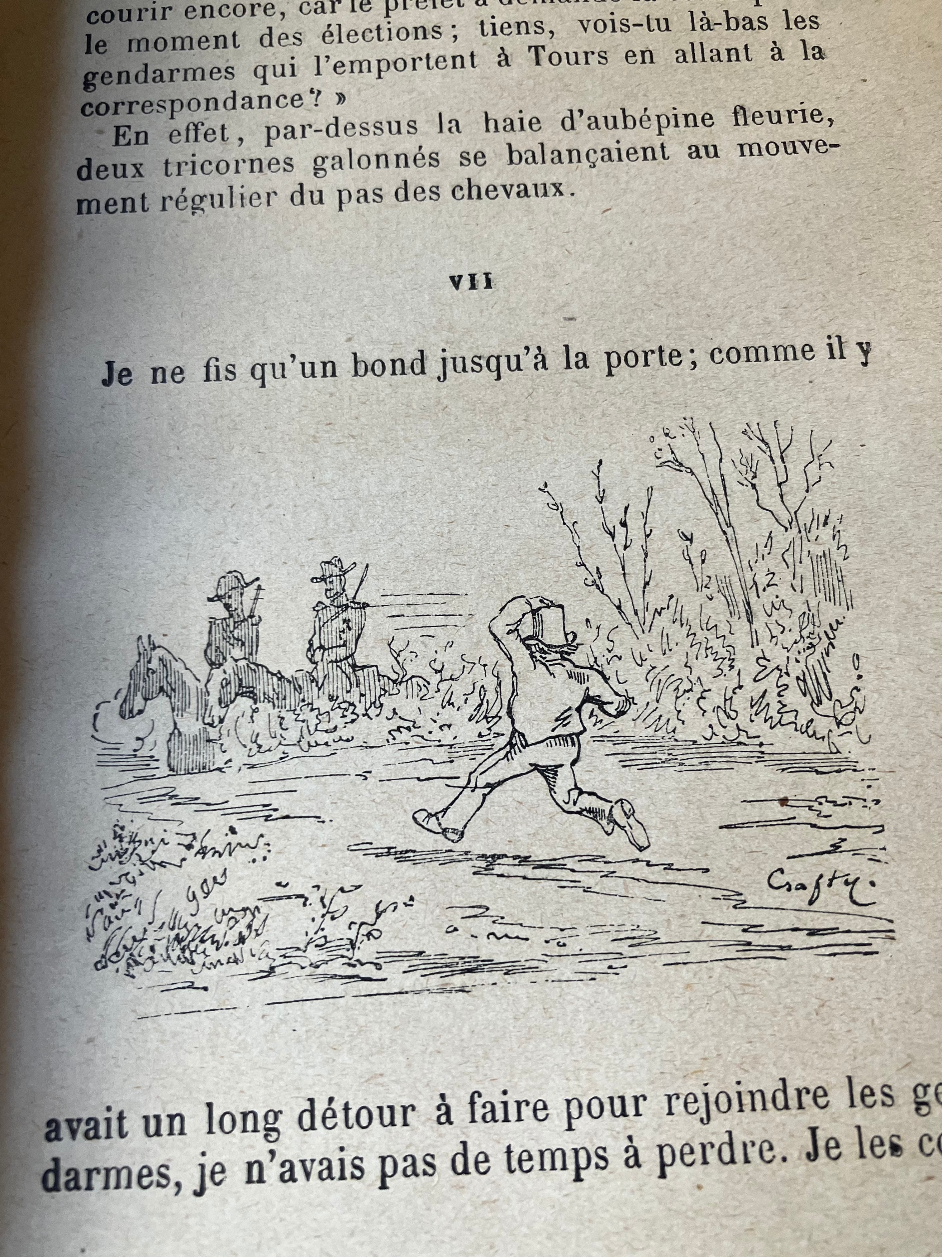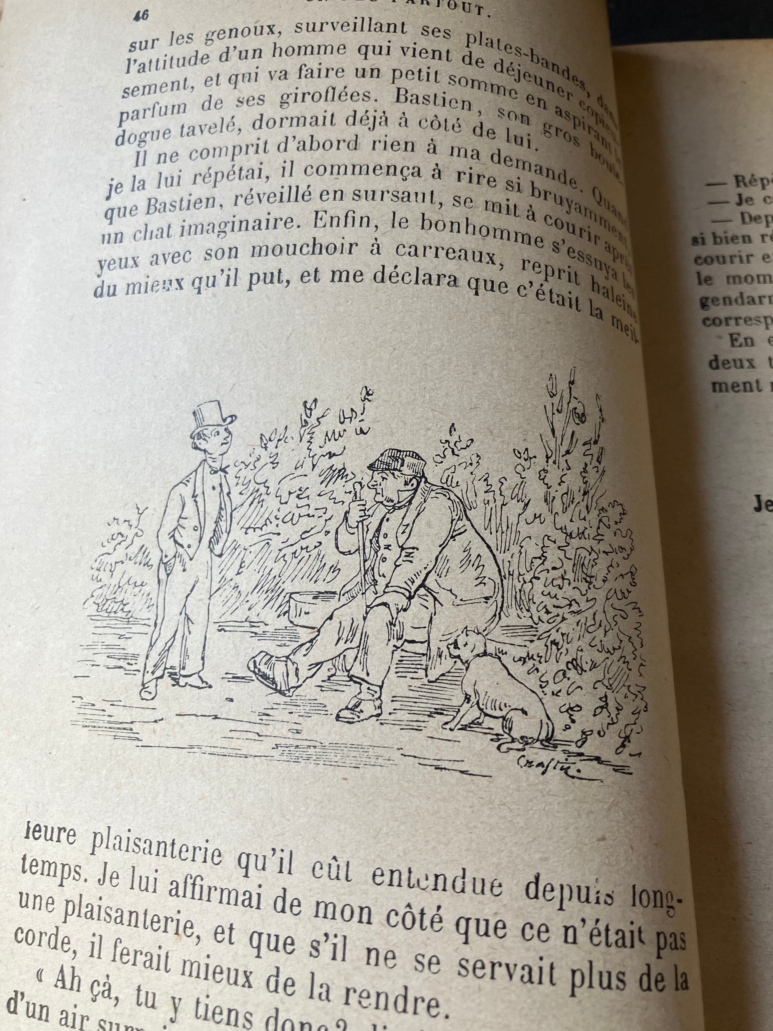正に色んな場面が登場する 1924年 丁度100年前のbookです。端に傷みあります。最後の猫ちゃんの挿絵が秀逸です。フランスアンティーク。