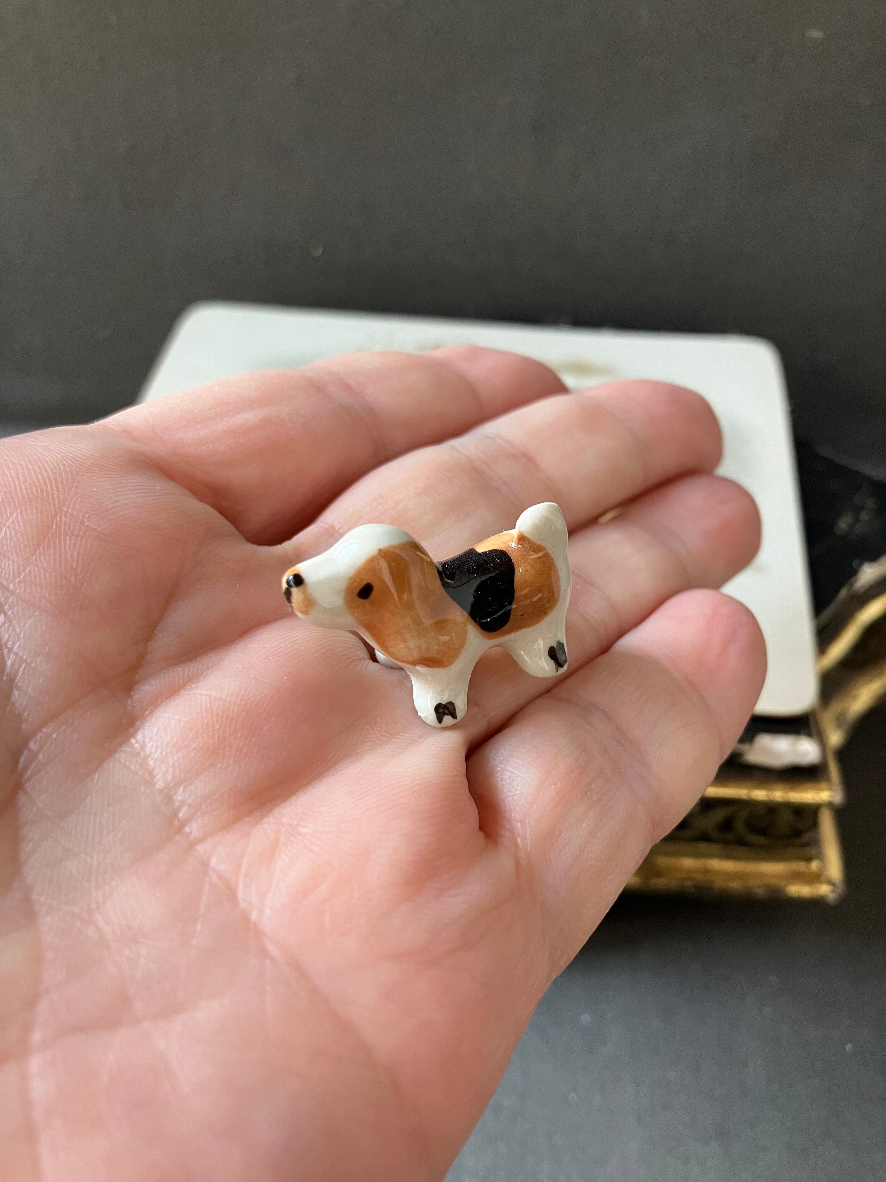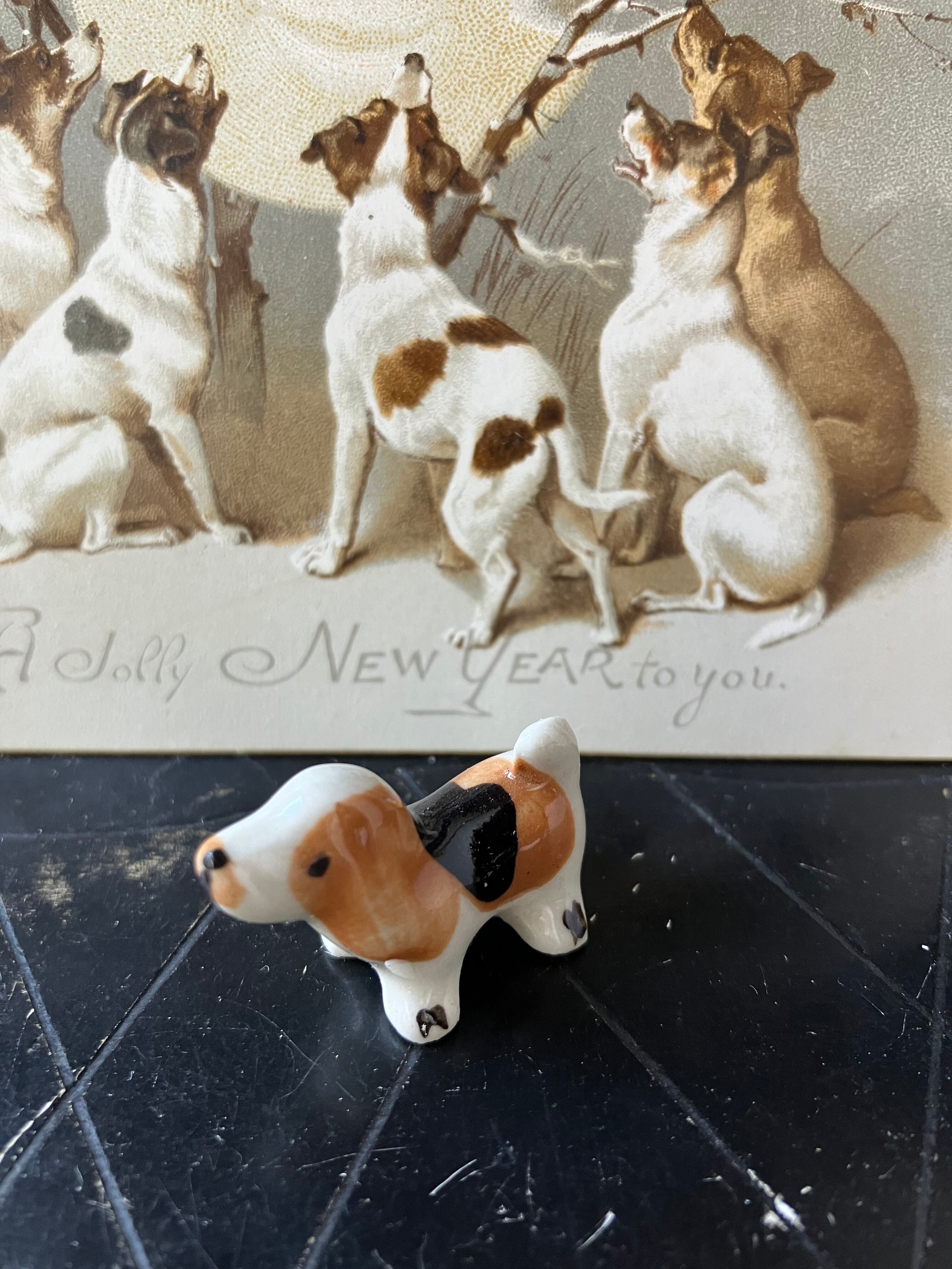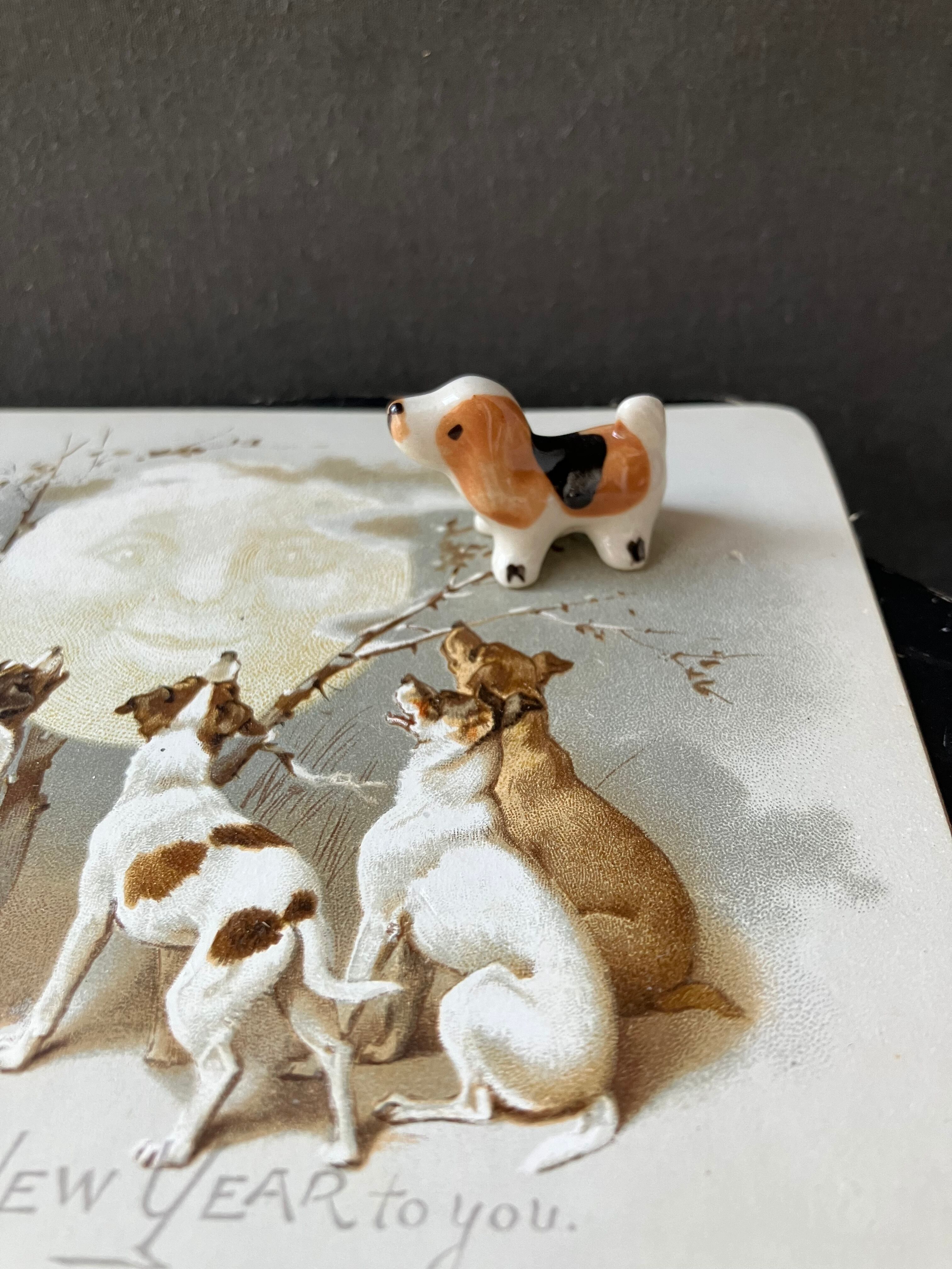 ポーセリン製 子犬のフュギリンとぴったりな犬のカードのセットです。フランスビンテージ。